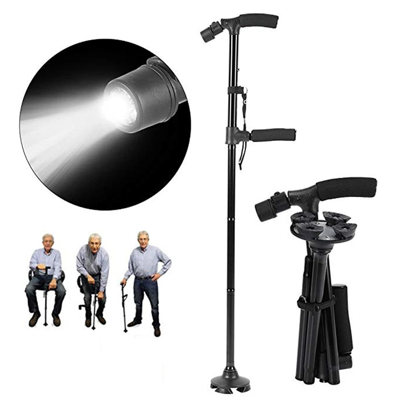 Special Price of Folding Trekking Poles With Flashlight Led Lights Adjustable Walking Stick For Old Men