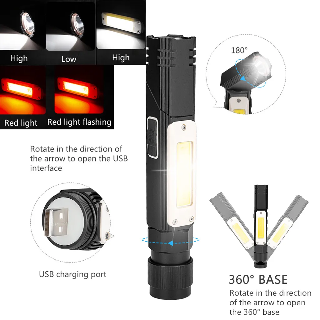 .image of Multifunction COB Q5 LED Work Light Lamp Adjust Flashlight USB Rechargeable